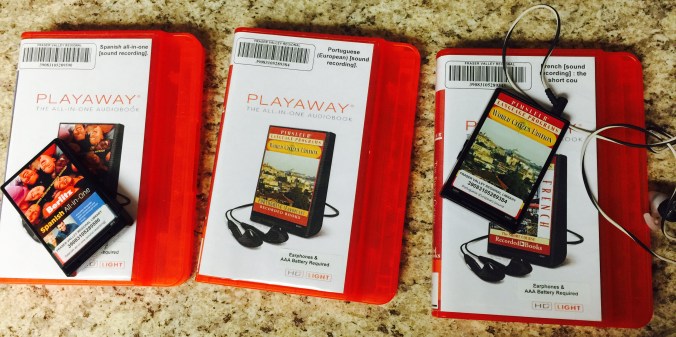 My kitchen counter has become a language playback display case. Each day and sometimes more than once a day, I grab one of the language lesson playbacks and throw the ear plugs in and practice. My morning run today was Portuguese. I was French on the way to work and back, and am about to get some Spanish in this evening. I have to return all of these to the library on Friday morning before we depart on a jet plane – so packing in my final refreshers while I can. Muy bien!