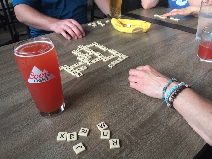A game of banagrams, a pint and deep fried dinner and we were set!