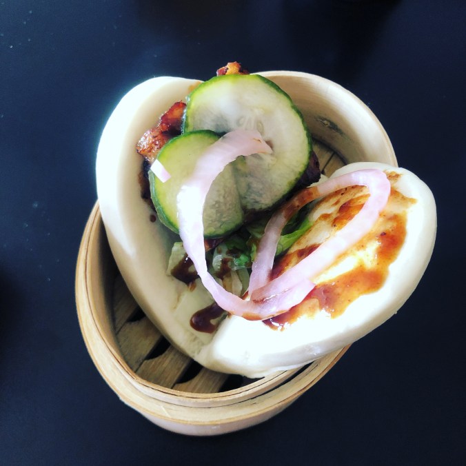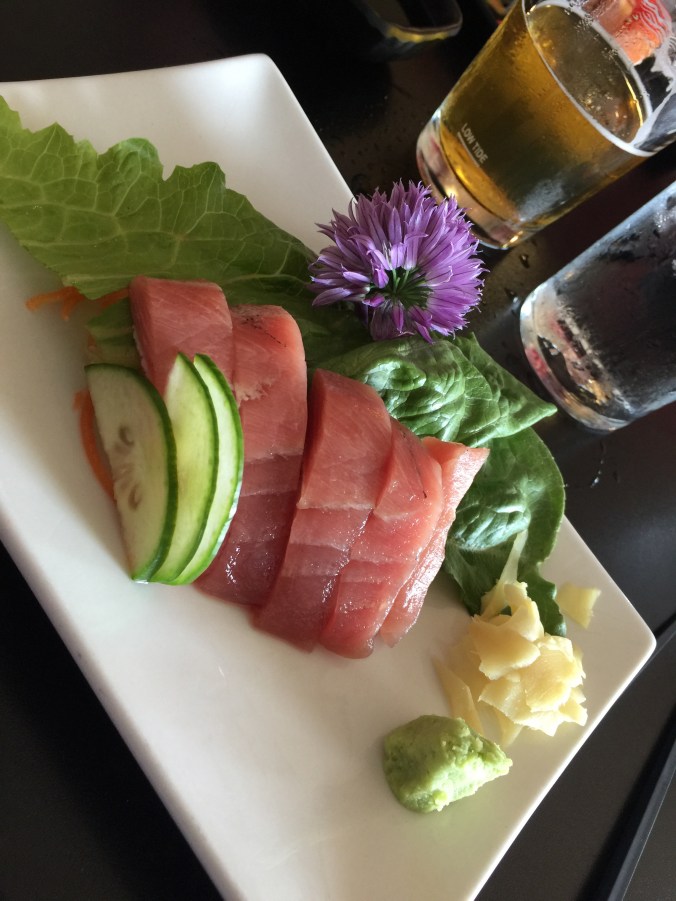 We started with some pork belly boa buns (drool) and then I moved into a yummy California roll topped with chunks of delicious (cooked) lobster, the yummiest tuna sashimi ever, and of course had to have The Yamocado (yam and avocado) roll because I love them and the name made me happy! All washed down with a local pint that had the best glasses ever – check out the marking on the side ‘high tide’ and ‘low tide’