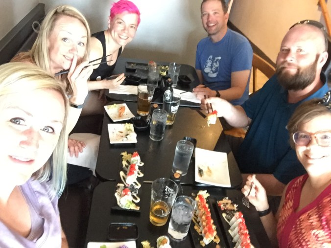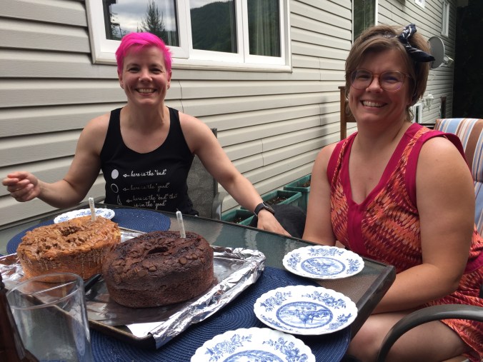 Next stop – dinner and amazing conversation with Nick’s dad and stepmom. Can you even believe volunteered to host the 6 of us for dinner? Oh and what a dinner it was! We pulled up to balloons for Charmaine and Cheryl’s bday – cute! For the rest of the evening we sat on their deck having beers, eating all the cheese toast you could dream of as a yummy side to the delicious chilli, and finished off the meal with a bday rendition and some cake! Perfection! Happy birthday twinsies!