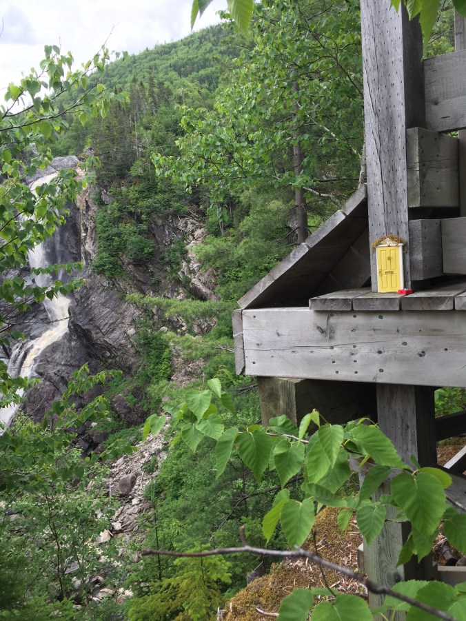 Now I have to say as great as the waterfall was … the highlight was definitely the little fairy door we found! Complete with some moss and a little box of fish. So super cute and in Newfoundland, with its fairy and gnome legends, sort of believable. Mr and Mrs Fae live there – I am sure of it – but were off collecting fallen flower petals for their dinner salad so we didn’t have a chance to say stop in but next time we are in town we will say hi for sure.