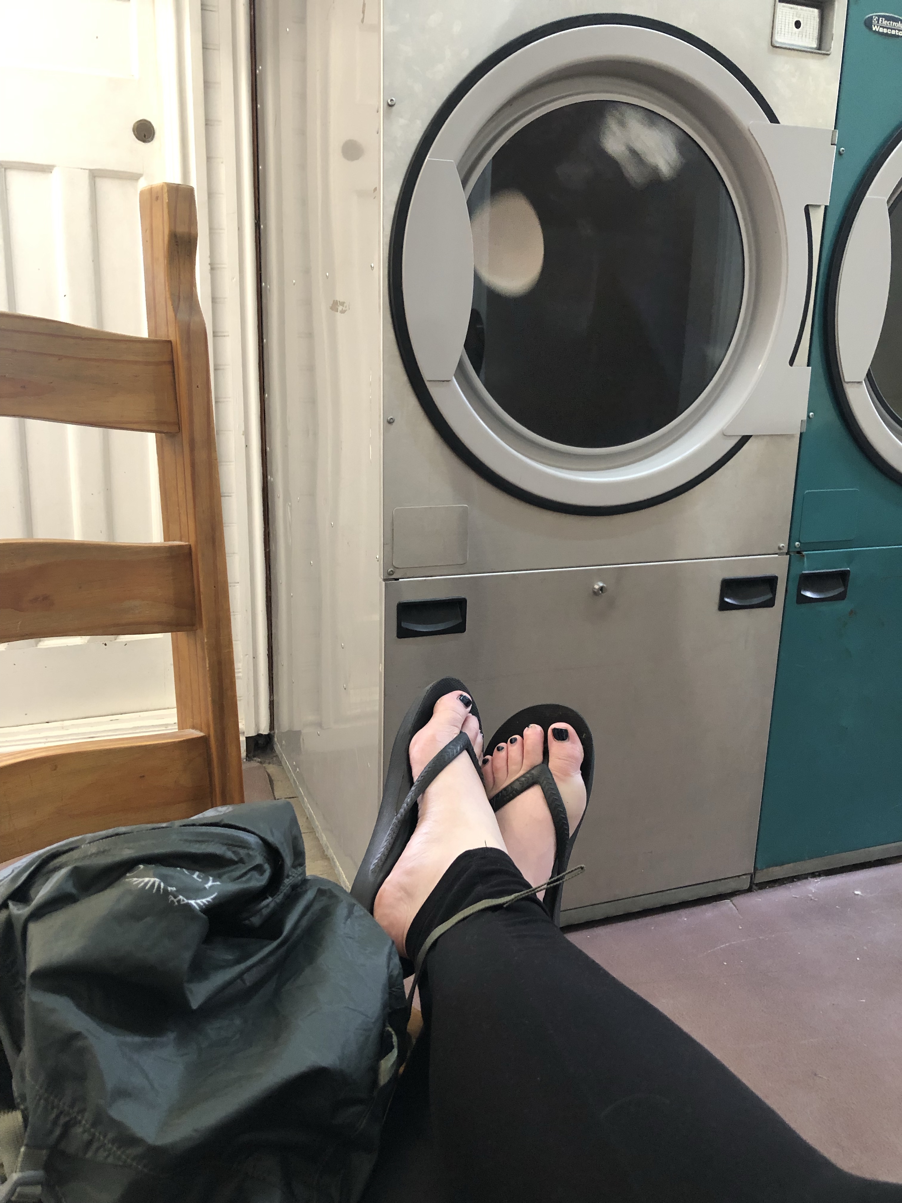 My the little adventures have been mostly about chores – first up was a visit to the tiny little laundromat (foot up while the clothes were washing and drying) to refresh my hiking clothes for the last half of the Path.