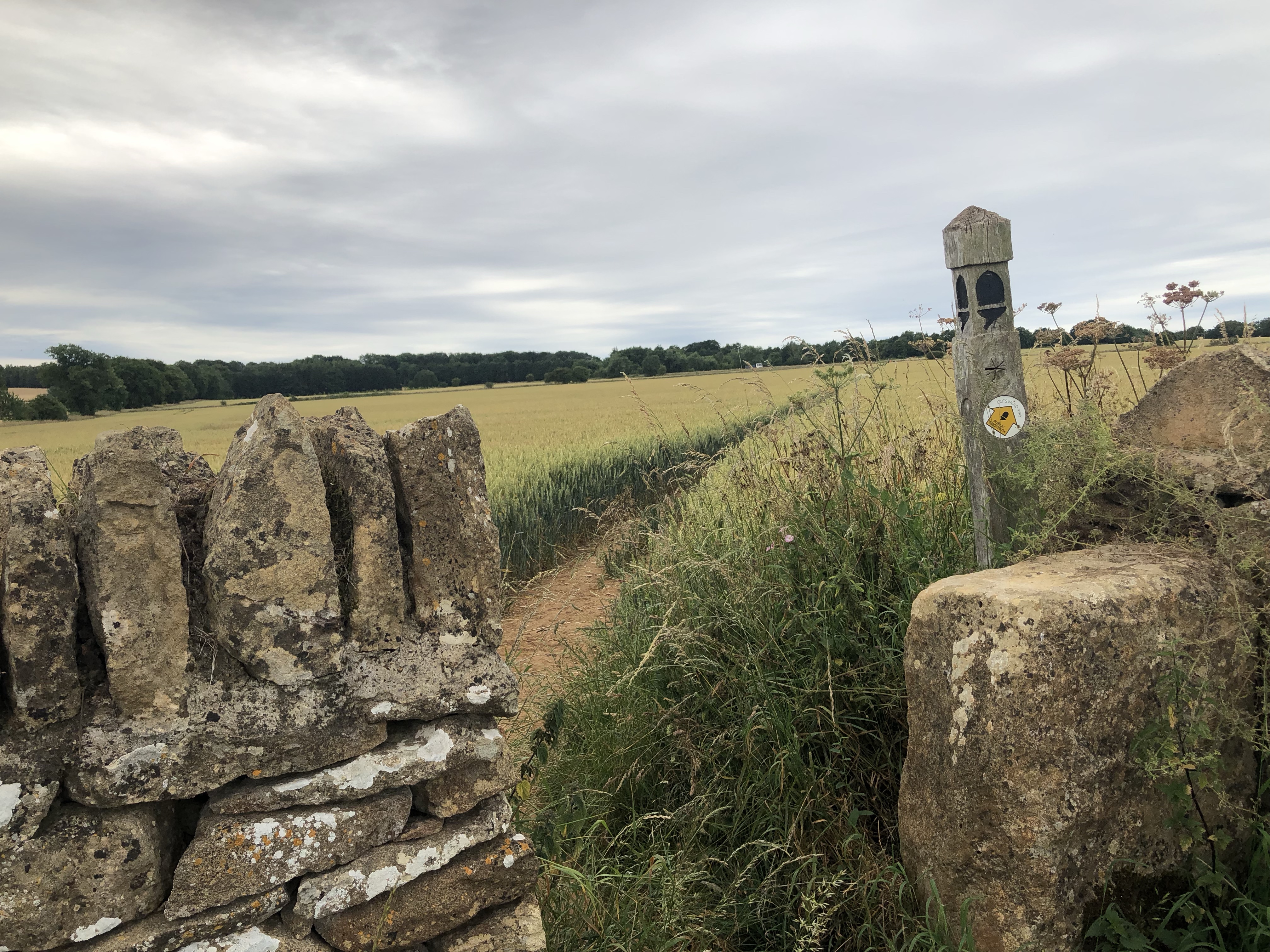 From there we made our way out of town and and across parkland and pastures and quiet lanes most of the day. The temp was meant to be about 24degrees so we were a bit worried about walking in the heat – but the ‘trail provides’ as they say and it was warm but we had cloud cover all day. Yahoo!