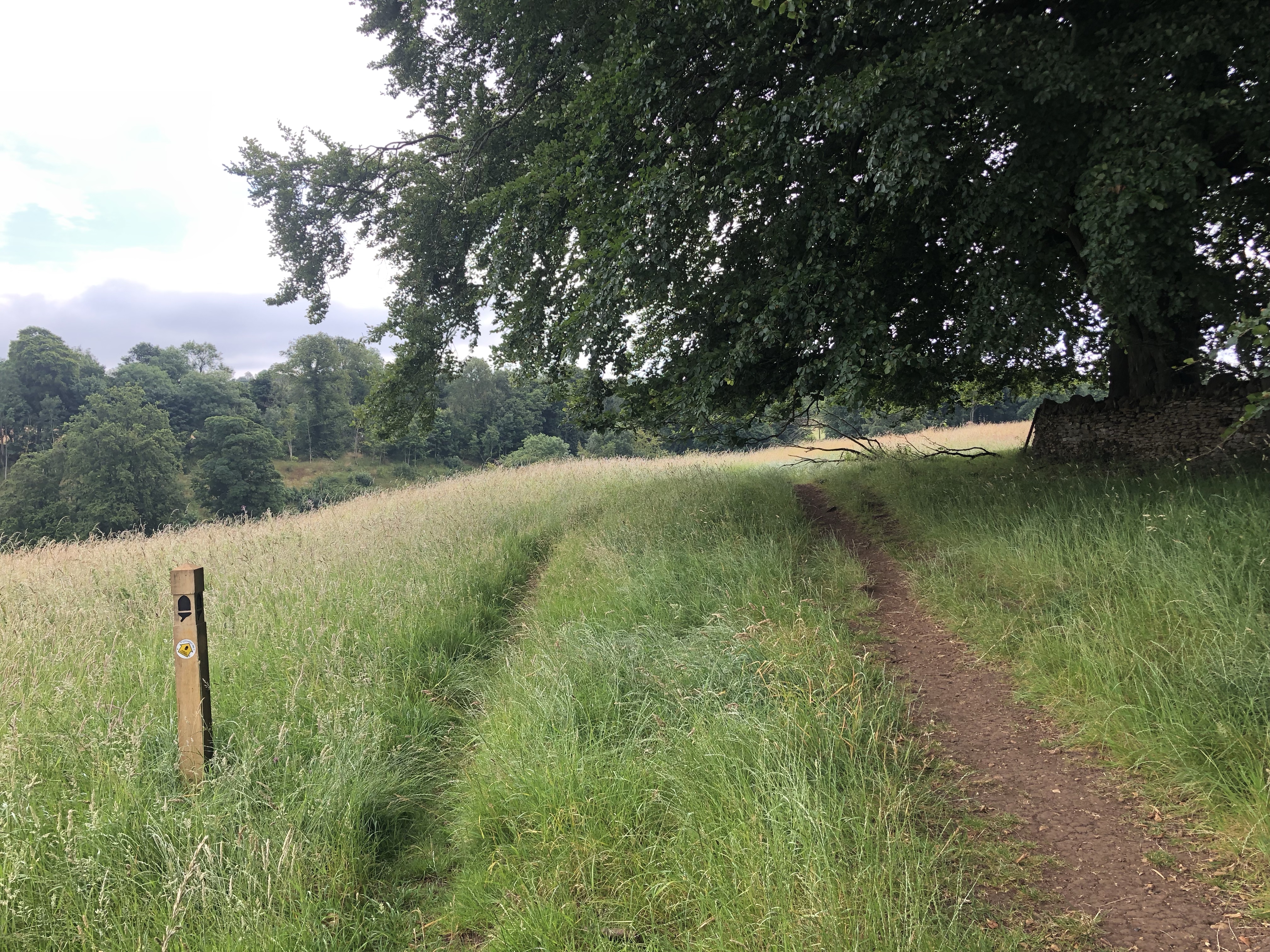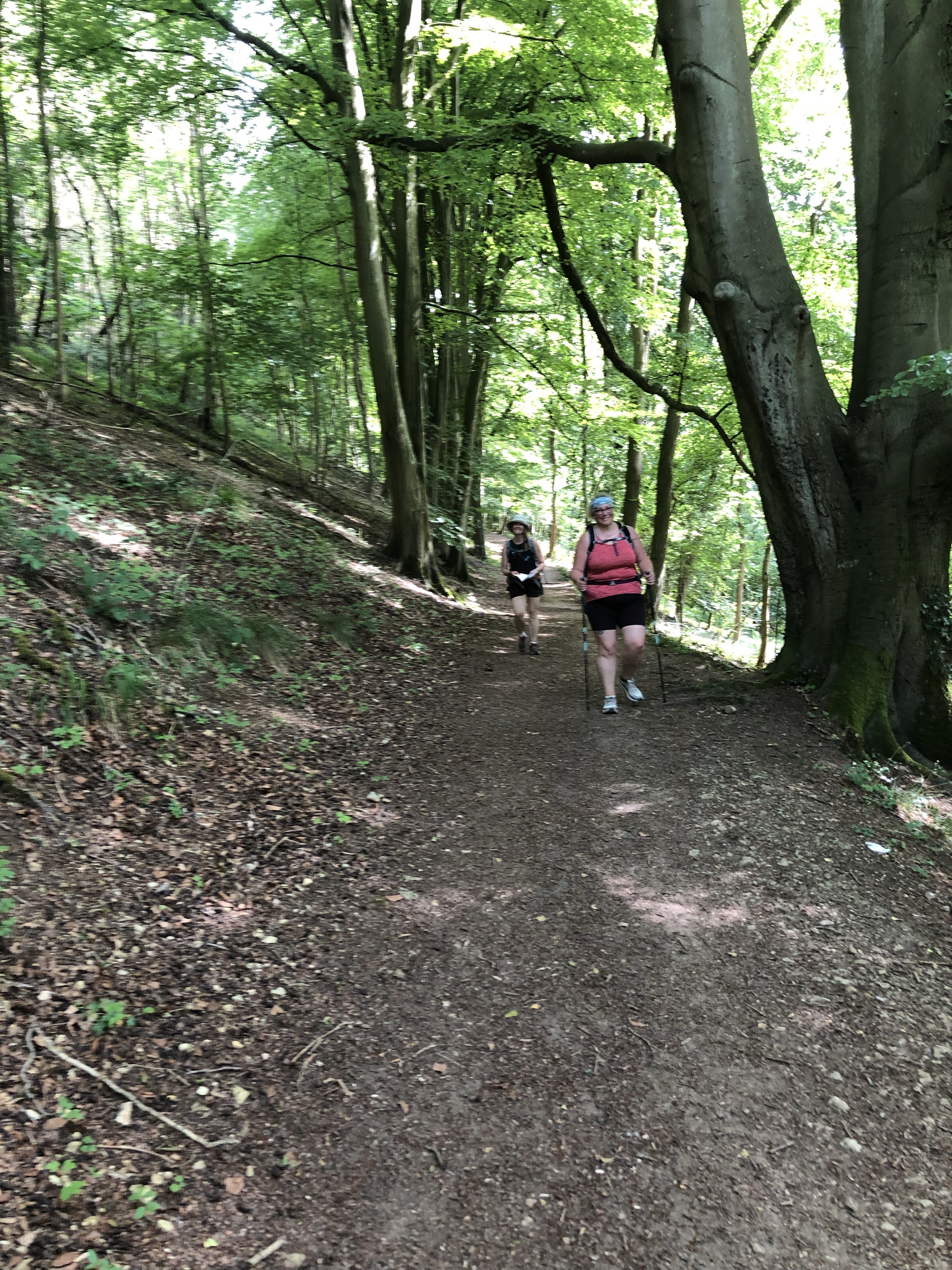 We left Sudeley Castle at about 2pm (we wandered for about an hour) to start the last leg of the journey to Cleeve Hill at the Rising Sun Hotel. The day was smoking hot by now and it proved to be a pretty hot, hard slog up and out of Winchombe. The first steep (and I mean steep!) hill out of town was a doozy – when I am tired I count my steps to distract myself – it was 807 direct sun, steep uphill steps up ick. We felt like donuts in a deep fryer! Thank goodness for the forest walk sections.