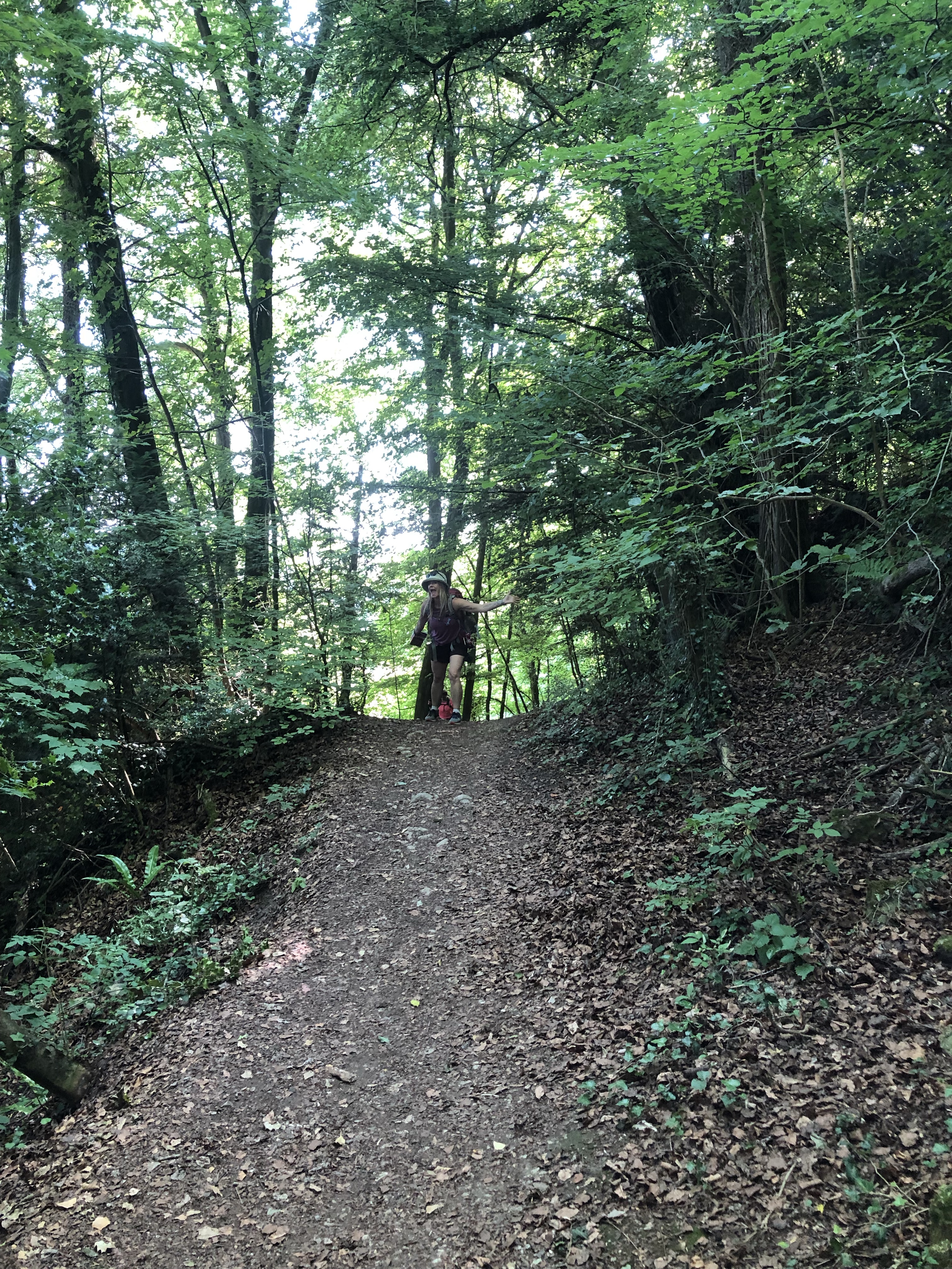 We started the day with a short but a death defying jog down a busy road from our hotel to the trail head – good morning! Then we were right away into a long and peaceful forest track for quite and time. Meeting dog walkers and petting some pups on our way.