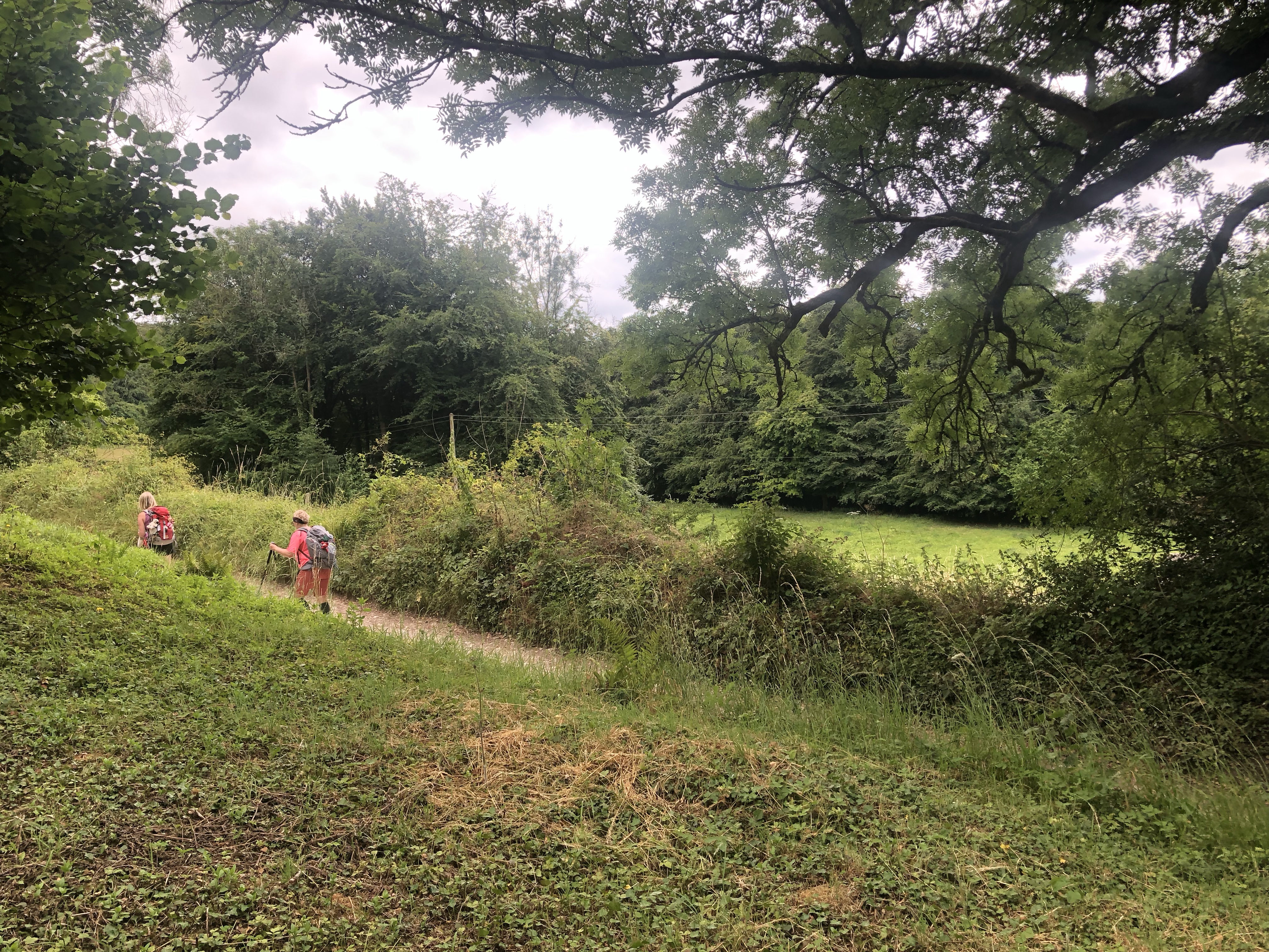 We finished the day with a 1.4 kilometer downhill lane off the Path into Haresfeild straight into our home for the night, the Beacon Inn. This place was pretty fantastic! We were all jammed into the same room like a summer camp and oh the arrival pint on the deck was exactly what we needed to cheers the day! A few visits by their pet chicken George as we sat on the patio was a nice touch too!