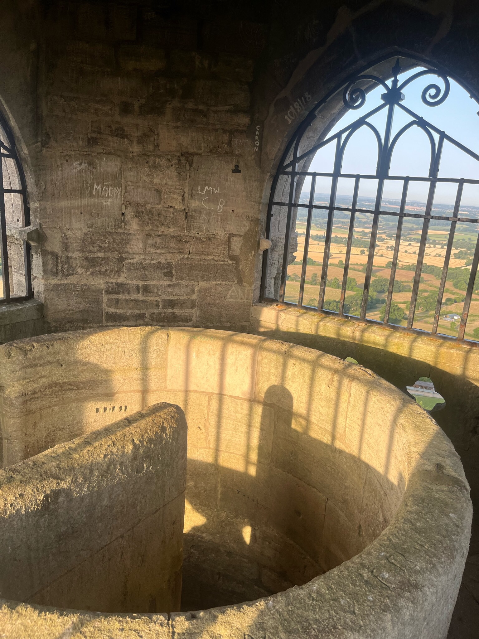 While the rest of us settled into our first break to enjoy our trial breakfast, Shar popped up the 187 steps of the tower to see the 360 views of the landscape. Adding more steps to an already 26km day on a skinny old, stone, skinny spiral staircase was not my idea of a good time. She was our tribute to head up and see what she could see – while we snacked lol.