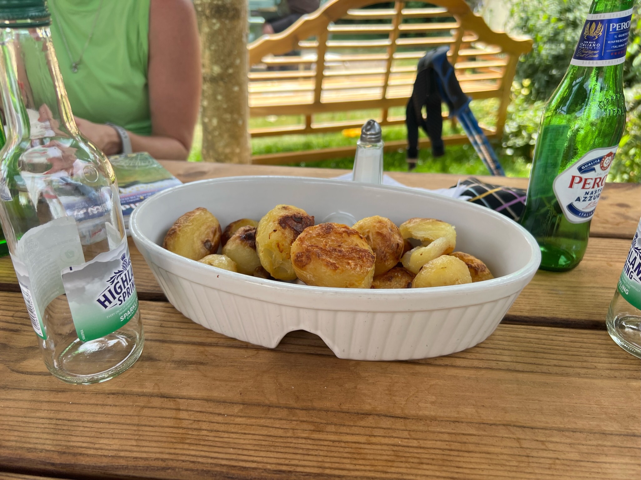 The bartender (we refer to her as Beaufort Bonnie now) was going into Old Sodbury at the end of her shift in an hour and offered us a ride AND the kitchen had cooked too many roasted potatoes for Sunday dinner and brought us out a warm bowl for free to enjoy. A sign to order cold pints to wash the potatoes of joy down and hitch the ride!