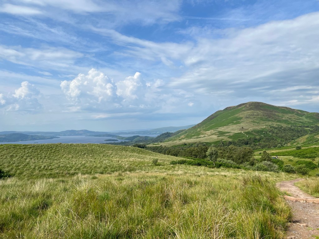 You can see in the background here the infamous Conic Hill, a 371m – our destination from this path! The walking was fantastic through the forest and then moorland paths – the views amazing!