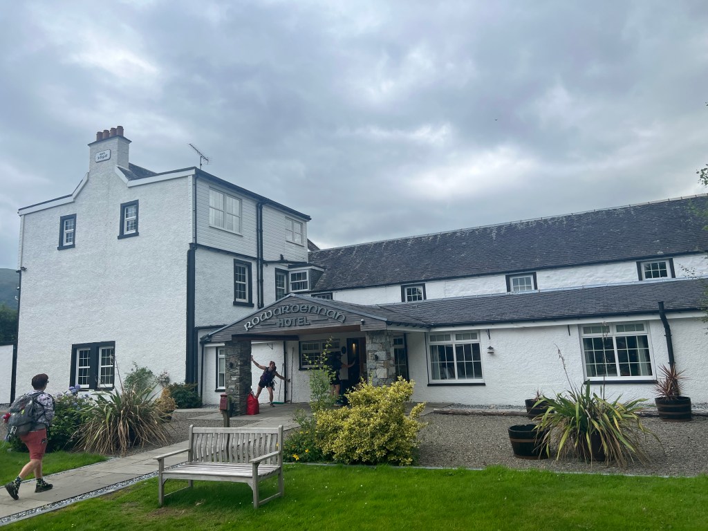 After a great lunch, toasties and pints, we were back on the Way to tackle the 11km to our home for the night, Rowardennan Hotel. The path was forest track or right along the Loch. Other than the clegs (horseflies), midgies and black flies it was a fantastic walk. The up hills were frequent and much tougher than usual thanks to the Conic Hill burn from earlier but wow what an amazing section of the trail!
