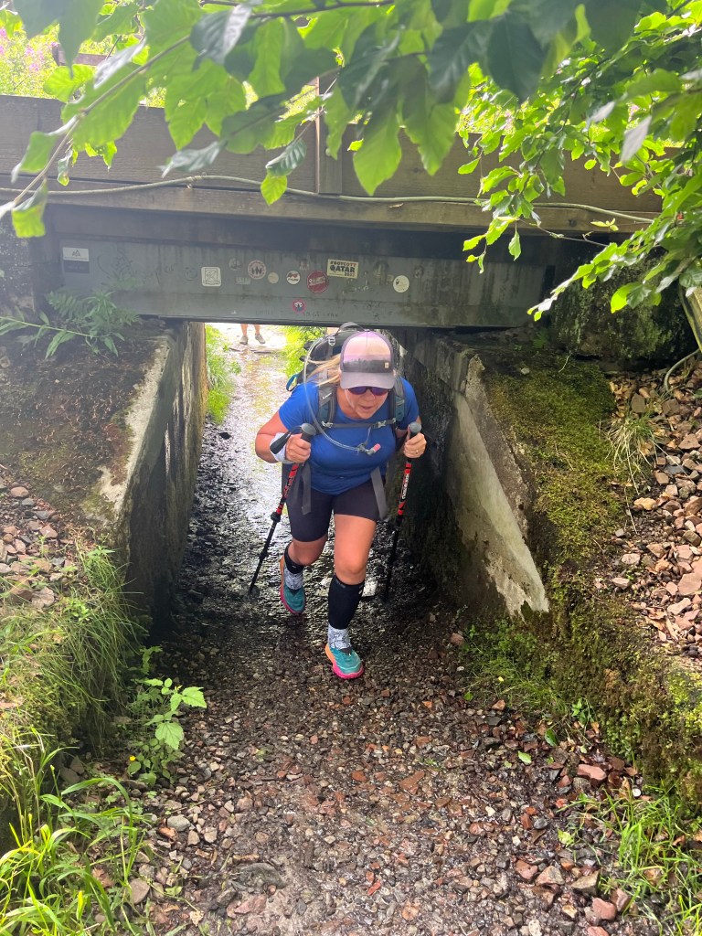 By now it’s raining hard. Most of us thought it would stay to just a classic mist of Scotland but were quick to discover this was a serious deluge and quickly donned the rain gear for the last couple of hours on trail.