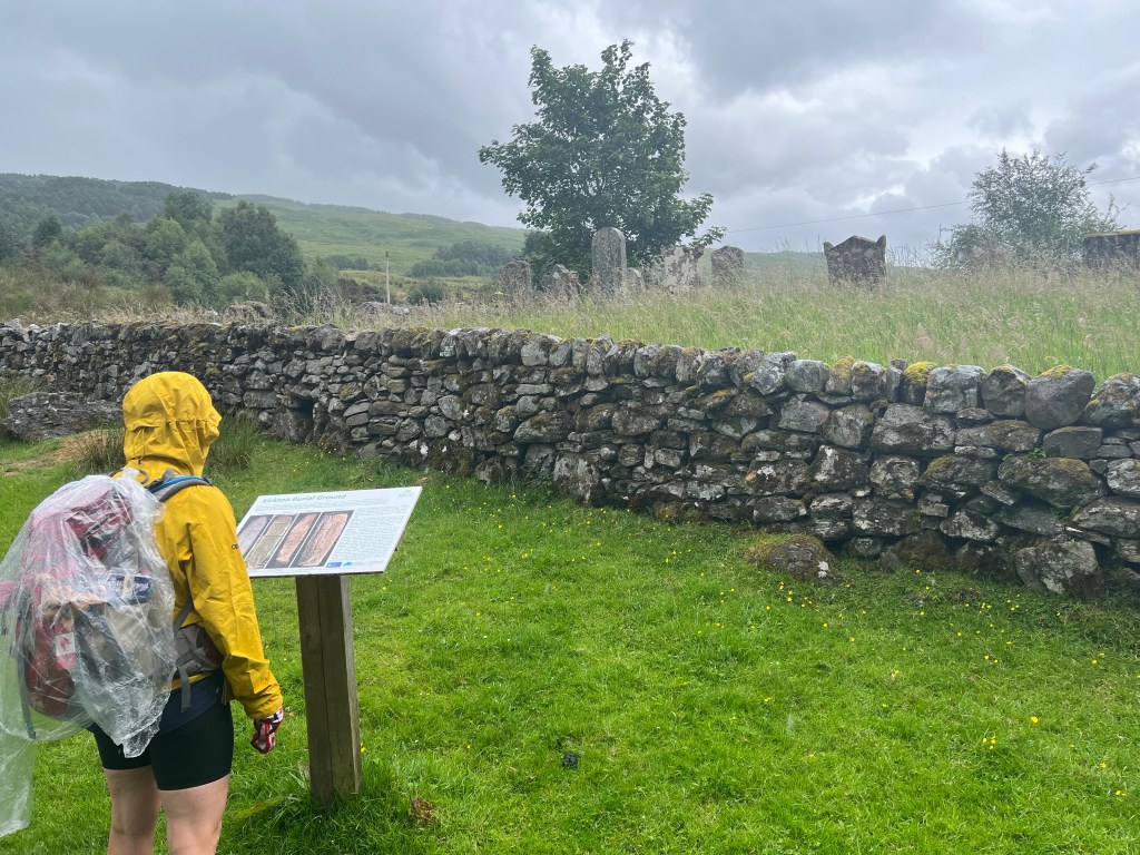 We passed some fantastic historic spots on our final kilometers of the trail. An old graveyard with a informative display of what the engravings on the grave stones mean; the ruins of the St Fillan Priory, and the loch where they believe Robert the Bruce’s sword was thrown into and legend suggest it still remains in the lake to this day.