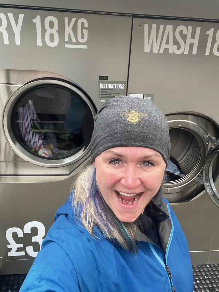 The rain continued to pour down! We braved the quick walk to our B&B and I took my turn doing our laundry (Rosa, mine and Shar’s) while they finished up in the pub or went back for showers. The laundromat machines were outside! Gotta love the Green Welly shop.