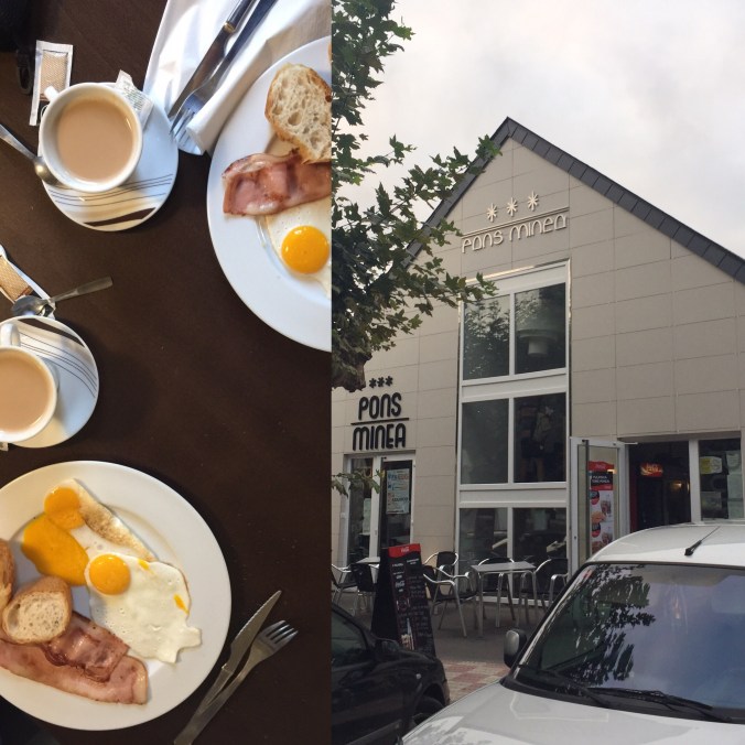 Full disclosure – we look super tired in this photo! We had an awful sleep. Our fellow hostel peeps were up at all hours and the sound from the plaza outside was loud well into the night too – many people were done their Camino’s and on they way home the next day, so there were in full celebration mode. Very few are as outlandish (like less than 10%) as us and decide to keep on keeping on out to the coast another 100+km.