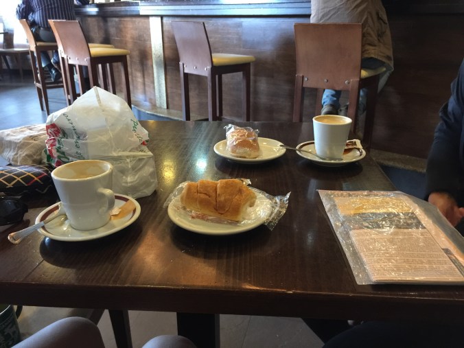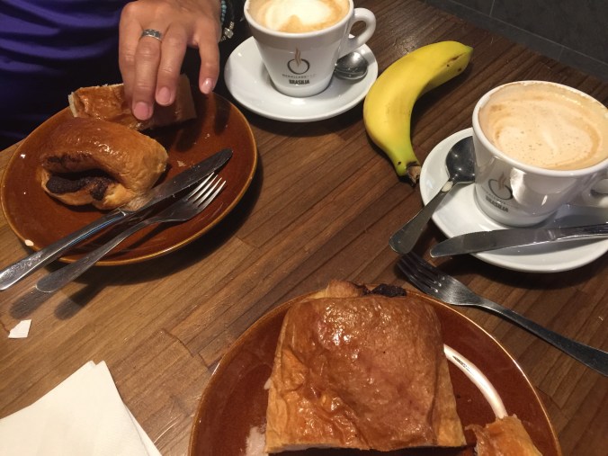 We ended up in La Pulperia Cafe / Bar just blocks away and loved it. The bartender and waiter were high energy and they had the most amazing and massive Croissant Napoletana (aka chocolate croissant) and steaming hot cafe con leche for us! We added a banana to make it healthy of course.
