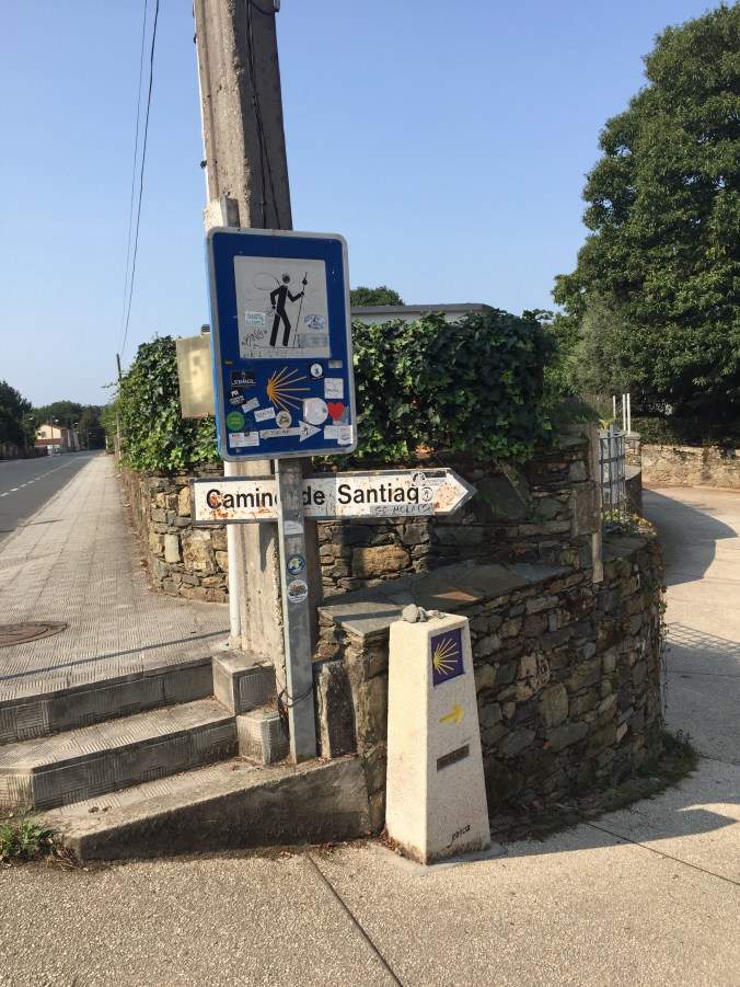 We have for sure noticed a couple things in the last 2 days as we near ‘the end’ in Santiago … there are more and more pilgrims and more and more garbage on the trail and more and more pilgrim graffiti. I am not impressed with any of this of course but it is the Way, not my Way so I keep on walking and try not to judge those around me for dropping their KitKat wrappers or writing ‘see you in Santiago, Bill’ on Camino way markers. Hmmm
