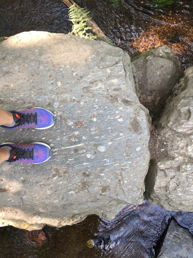 Ok for real on our way, we hit a darn hill first thing and by hill I mean hill like crazy hill. Like never ending, hamstring torture hill. I was racing a snail basically and we were sweaty as all heck in the 97% humidity by the top!
