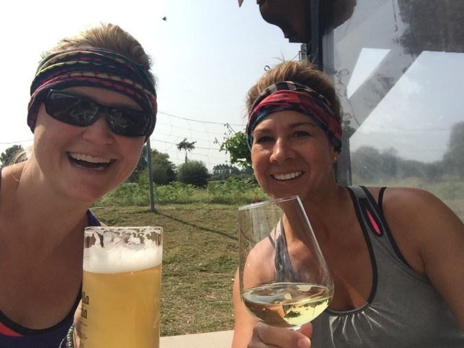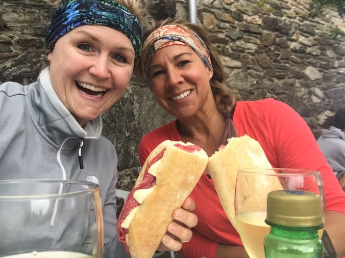 Finally about 3pm we both felt like we should have been there already and we were starving. We stopped and sat on top of a stone wall and ate the sandwiches we had made the day prior and shared a tetra, individual to go box of wine in our Canada cups. Mmmm
