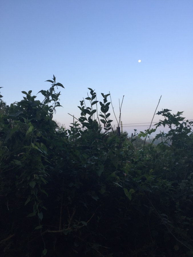 We were on the path by a few mins after 8am and pleasantly surprised to see we had clear skies and a beautiful full moon still in view before the sun broke the horizon. Wow!