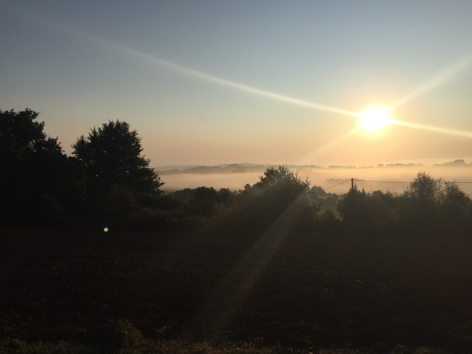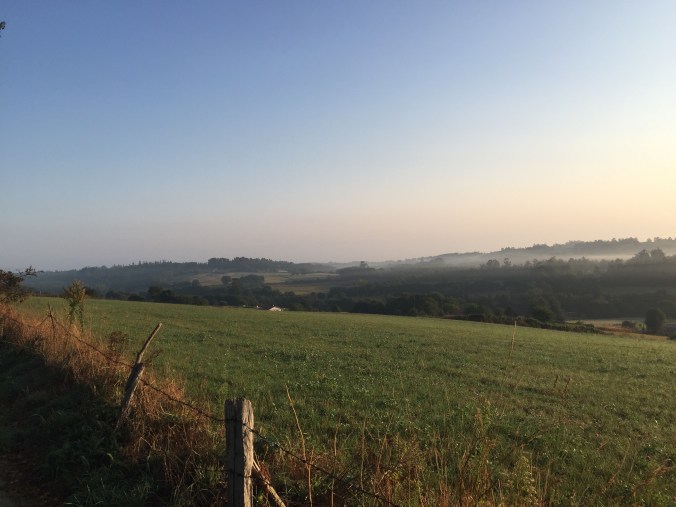We started our day in a very casual fashion. With just 20km or so to cover to our destination we had loads of time. We only had one roomie in our hostel room and laid about until she exited – then we had the place to ourselves to get ready for the day! I laid in bed longer than usual to be honest enjoying the view from my comfy pillow – aka the fog. The place we stayed had clean, wonderful duvets on the bed and we have not experienced a real blanket in weeks!