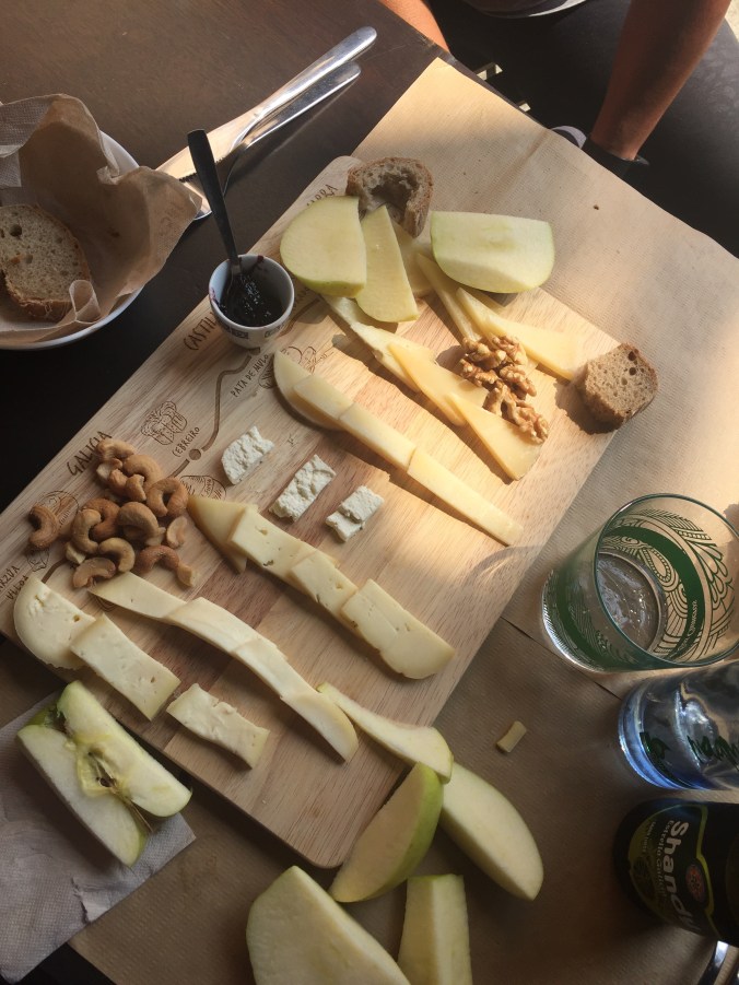 By 430 we were at our great hostel Via Lactea in Arzua and getting freshened up for dinner out. We threw some laundry in so had to chill at a bar across the street while we waited for the washer to complete (hard life I know!) and couldn’t resist another photo shoot and to try the local Arzua cheese!