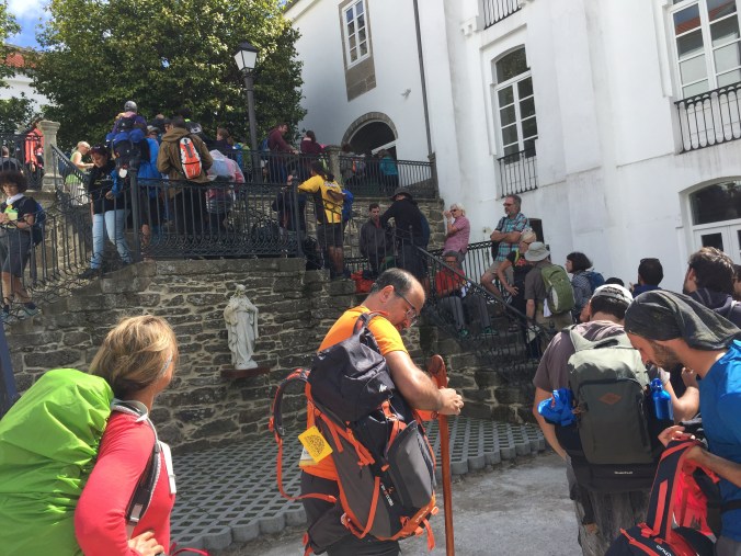 Our day began around 830am yesterday after alone, last morning – we had the hostel room all to our selves and that is such a novelty we couldn’t resist enjoying it. Most of the the pilgrims left before 6am to get to Santiago for the noon Mass in English, but walking 2 hours in the pitch back is not my idea of a good time. We also needed a bit of time on wifi so before we left we chilled in the hostel living room sipping instant coffee (well sugar, fake cream and only some coffee from the taste of it) for a vending machine. We would need a real coffee room to replace this taste from memory.