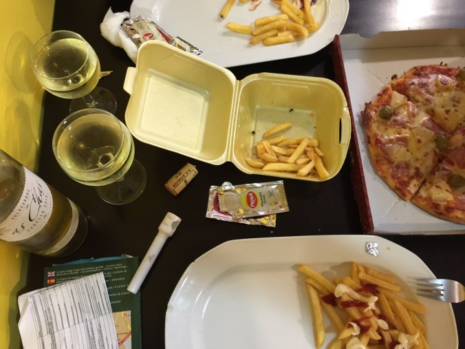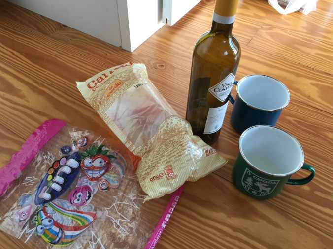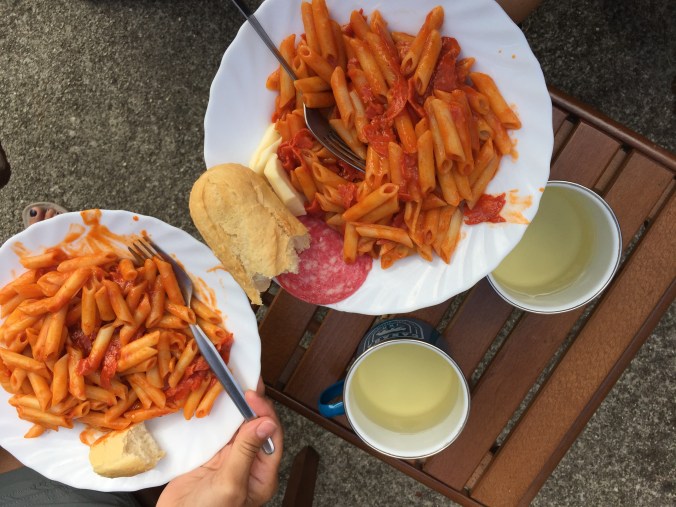 We made ourselves a penne, tomato sauce, fried garlic and chorizo sausage dinner with some baguette and white wine – all for a well spent 5euros (hey Shar that is the best 5bucks I ever spent!)