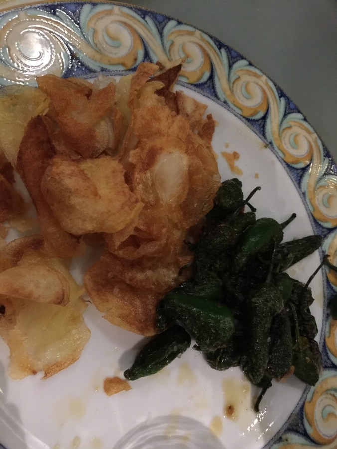The day wrapped up with a celebration with pimientos de pardon (deep fried jalapeño peppers with delicious rock salt) as our local treat, potatoes cause we burnt enough calories and why wouldn’t eat some, and shrimp as we are now on the coast. Chased with a local bottle of white to top things off!