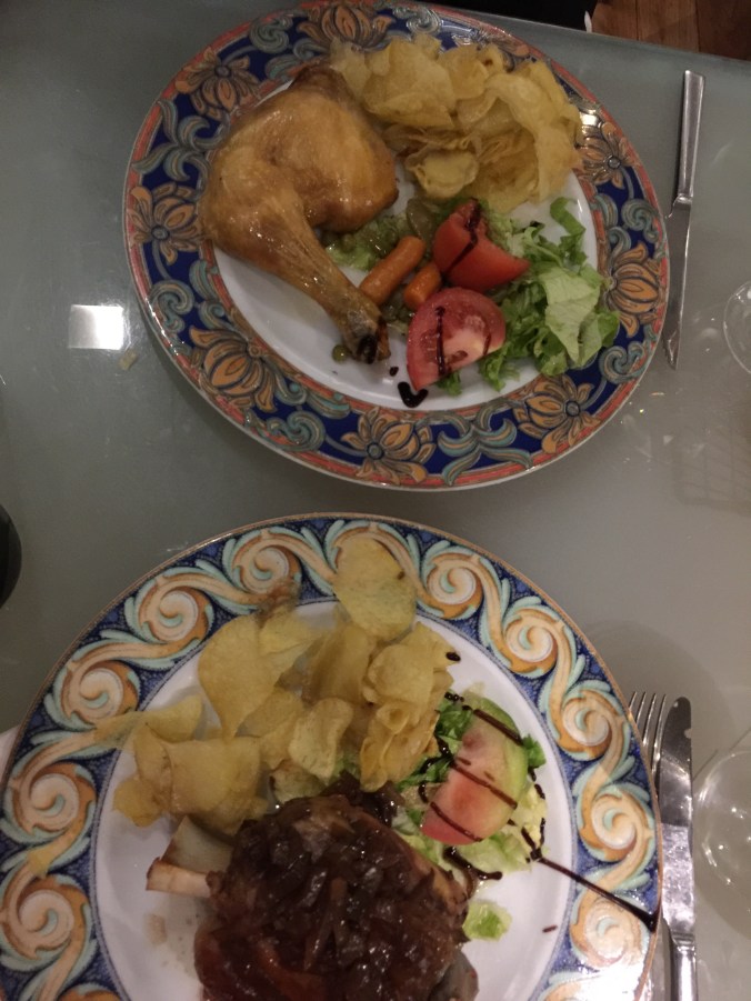 After our Chu-Chu ride about the city, it was after 9pm and we were starving for supper – oddly this is the time everyone eats supper in Spain so the restaurants were fun and busy. We found a great place without too long of a wait and enjoyed an amazing pilgrim’s meal!