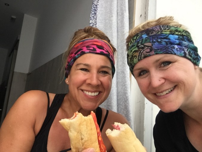 Why? No joke, Lana’s feet are in a bad way. She is a blister bandaid (compeed) advert! We are pulling all the stops to get her to a place where she can walk and enjoy it and that means diff shoes, less weight, compression socks, you name it. When every single step hurts, everyday is absolutely no fun. Usually Lana and I are total geeks together with jokes and antics – and sore feet make that really tough to be. So we are getting things sorted! We have weeks left to walk and we will be laughing till we cry again soon!