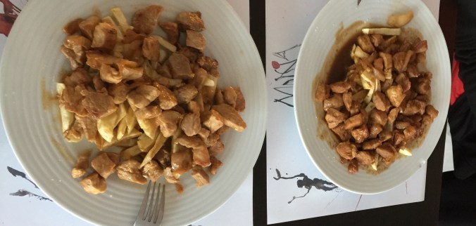 We wrapped up the evening with some eats … we thought we ordered pork chops with chips and we got pork n chips of sorts. Weird but so yummy! Like meat poutine without cheese and gravy – ok so not really like poutine at all. But yummers all the same.