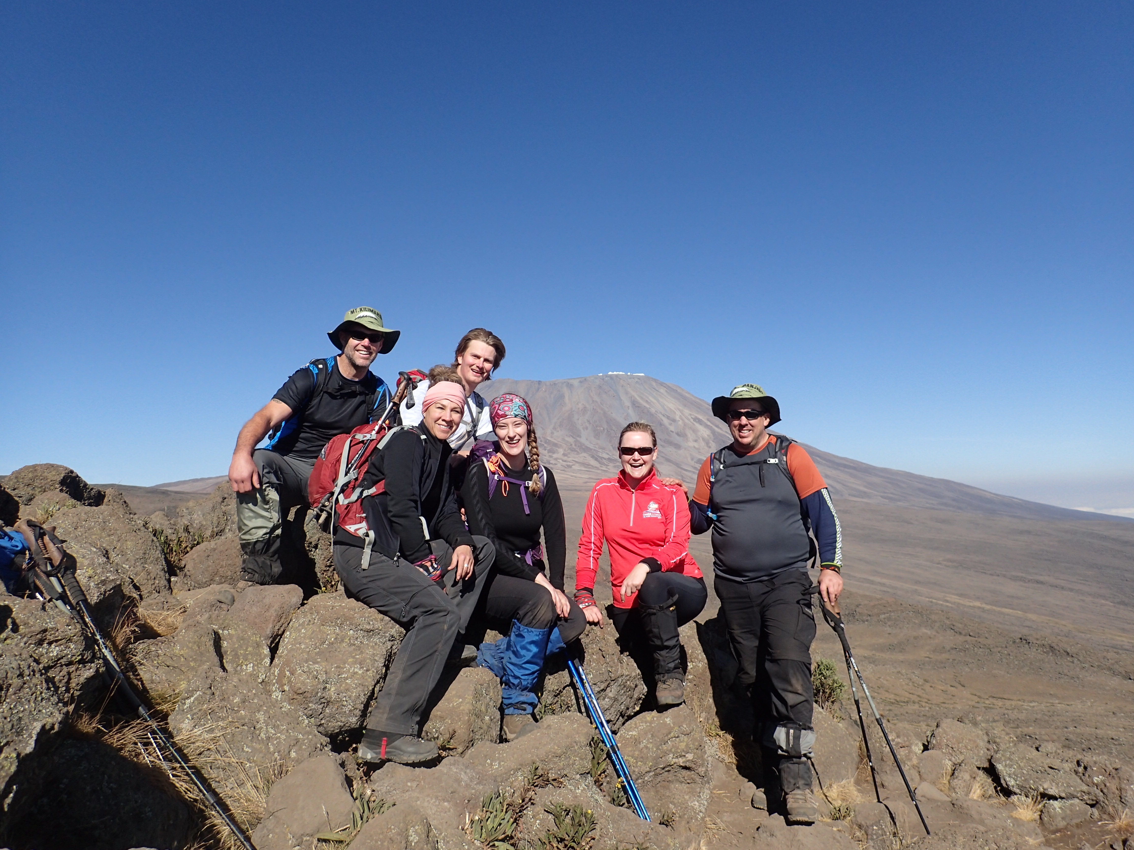 Kilimanjaro Day 4/7 in the Saddle January 5, 2016January 5, 2016 / runningforthegate Day 4 of 7 a pic here of our almost complete crew as we get started on our decent down and across the saddle.