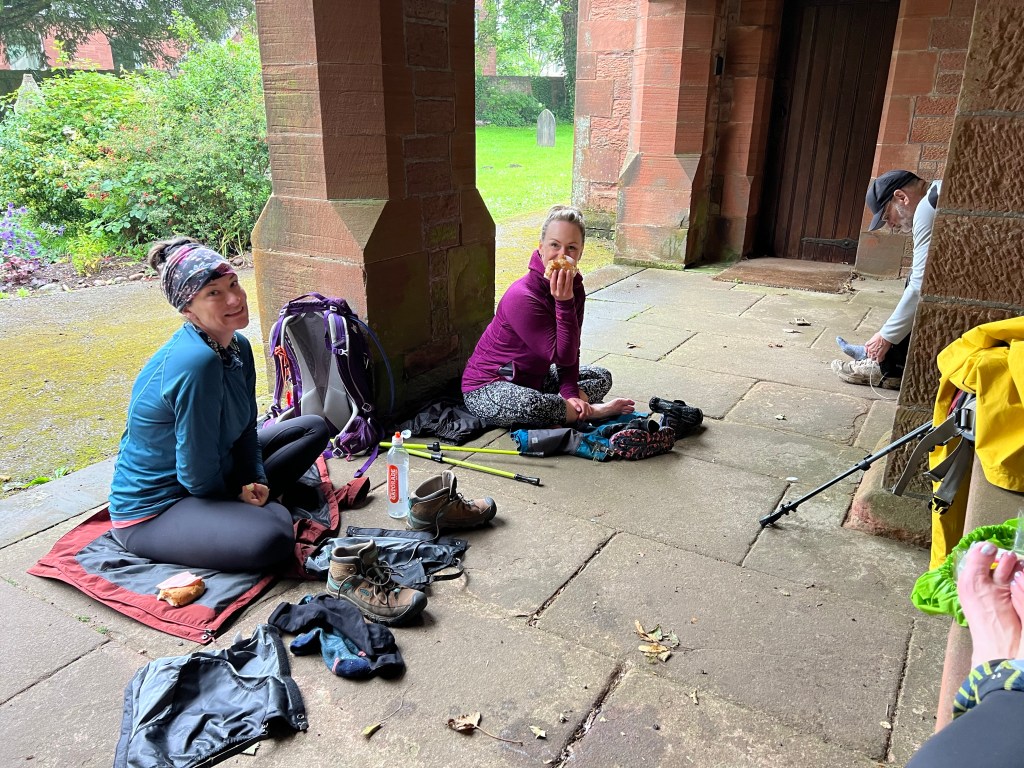 Before leaving Shap Abbey, we took a little 11sies. Shar and Dad both did a little preventative toe / blister surgery. The path today was mostly grass and while that sounds like such a break from rocks (and it is) that doesn’t necessarily mean it’s always easier. The feet slide a little more inside your shoes when you are walking down and up on angled fields, making what might have been a nagging spot on rocky climbs now a yelling spot on grass.