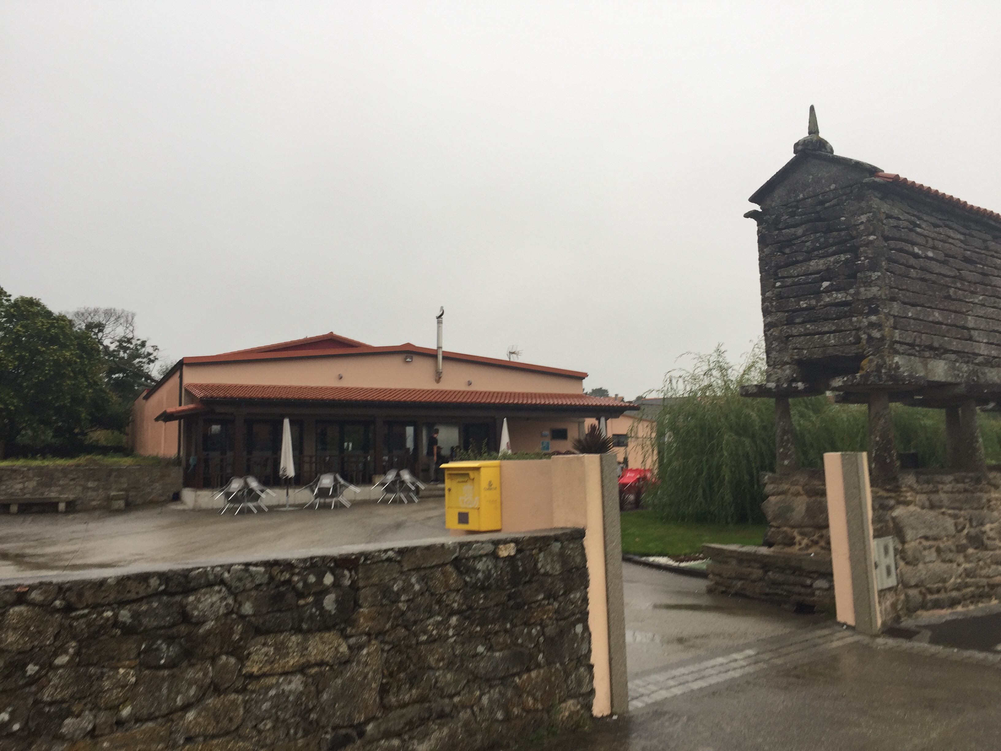 Any who, we were up and ready for our soggy day by 8 or so and enjoying breakfast (coffee, toast and bananas) in the cafe of our albergue. By 920 we had done our good morning social media stuff and we hit the trail. See ya later Casa Loncho of Oliveroa.