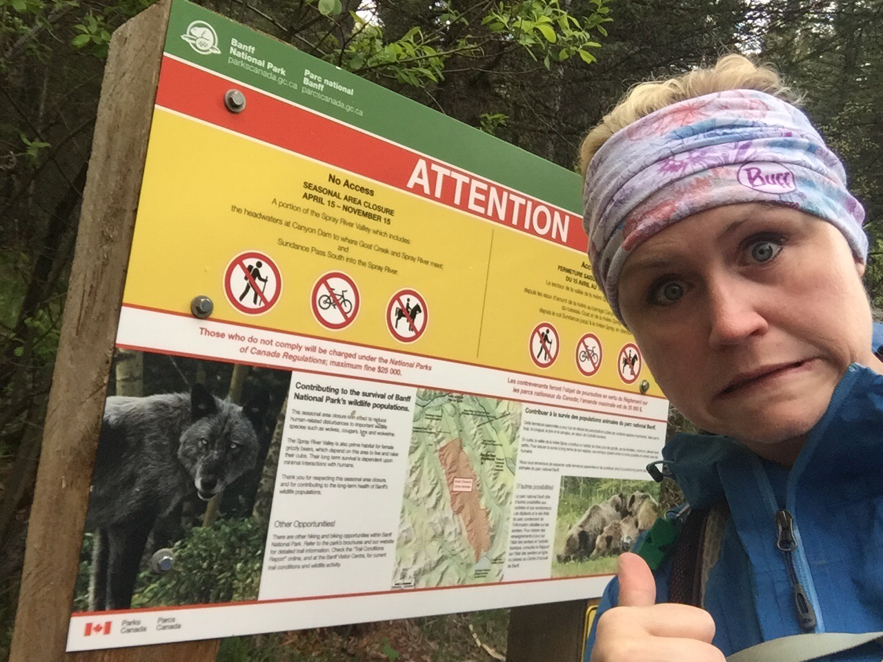At the head of the trail there was a big ole sign warning of wolves and grizzly bears in the area. Always a nice ‘welcome to the trail you hikers who may also double dinner’. Ha! Usually I see these signs when I am alone hiking and they freak me out – which 4 of us hiking though it was way less intimidating. Ok maybe not way less but at least a bit less.