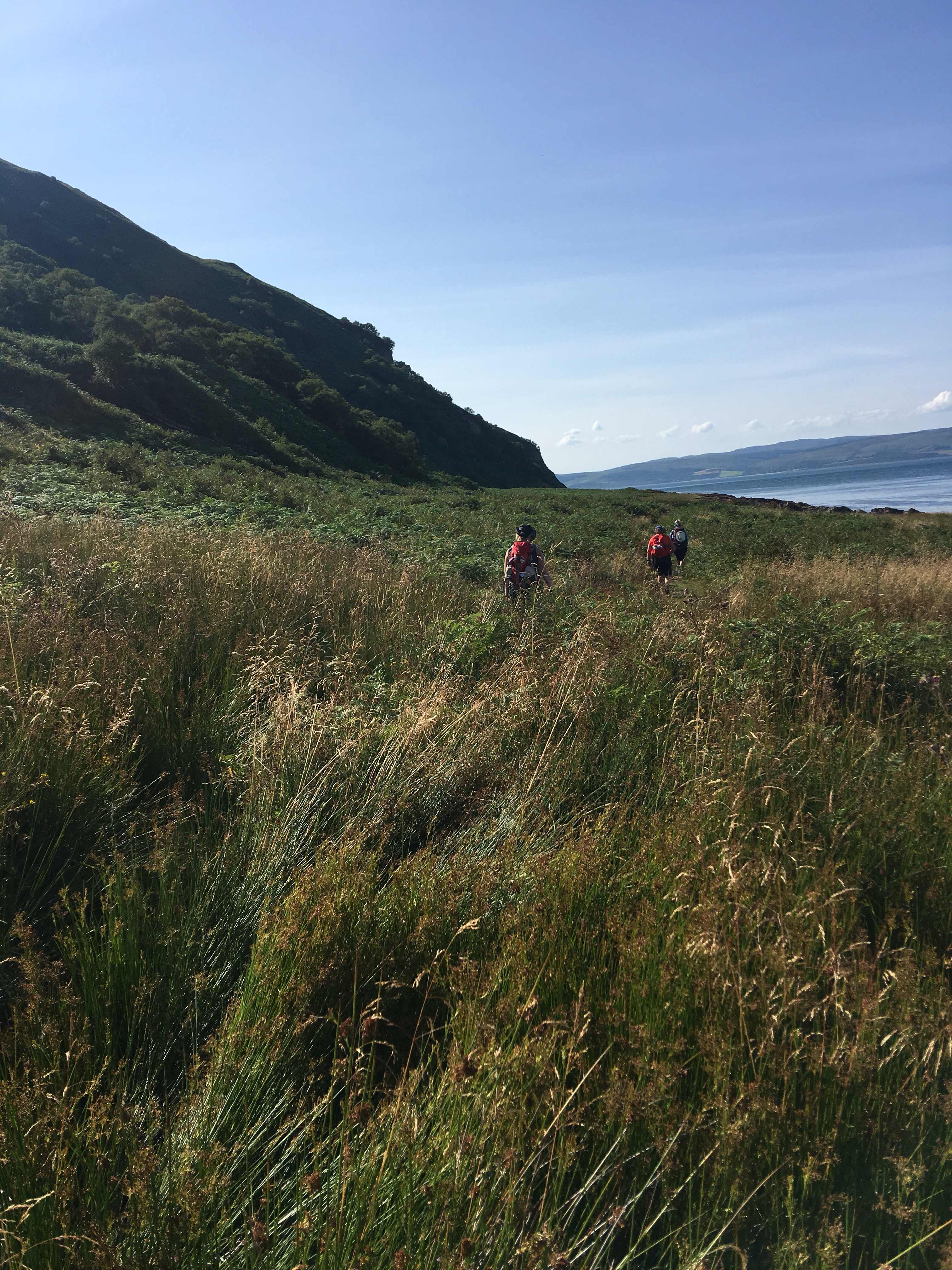 Day 2 on the Arran Coastal Way proved to be another doozy. A beautiful doozy that has left all of us with a bit of a hobble or a limb tonight- tight muscles, dogs barking, sun burns, and blisters seems to be the order of the body today for our crew.