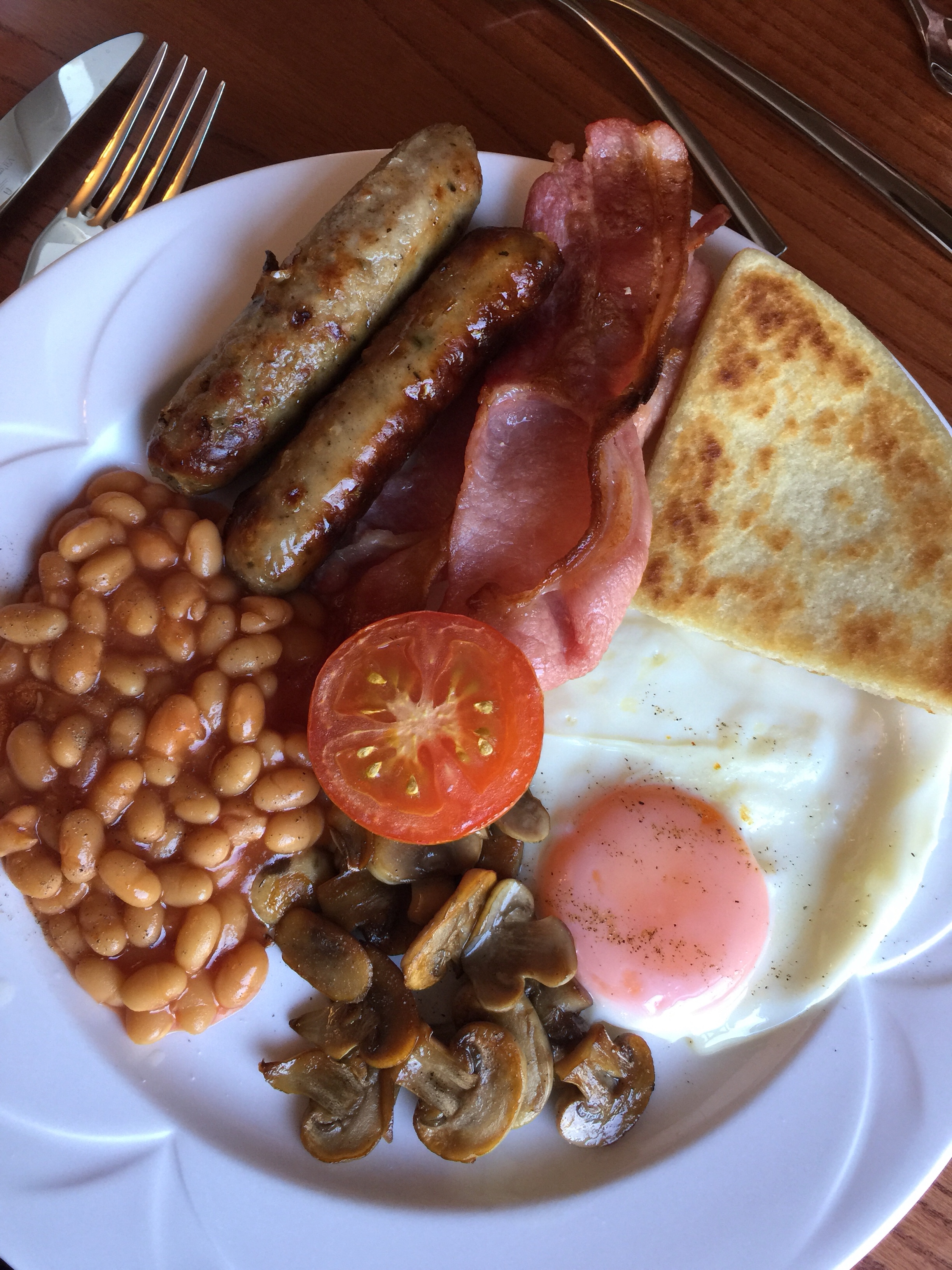 If you don’t know what a full Scottish breakfast is let me tell you! 2 eggs, 2 bacon, 2 sausages, baked beans, grilled tomato, potato scone, fried mushrooms, and toast. Most of the time it also comes with Black Pudding. Ours did not but it would have been epic if it did. So yummy!