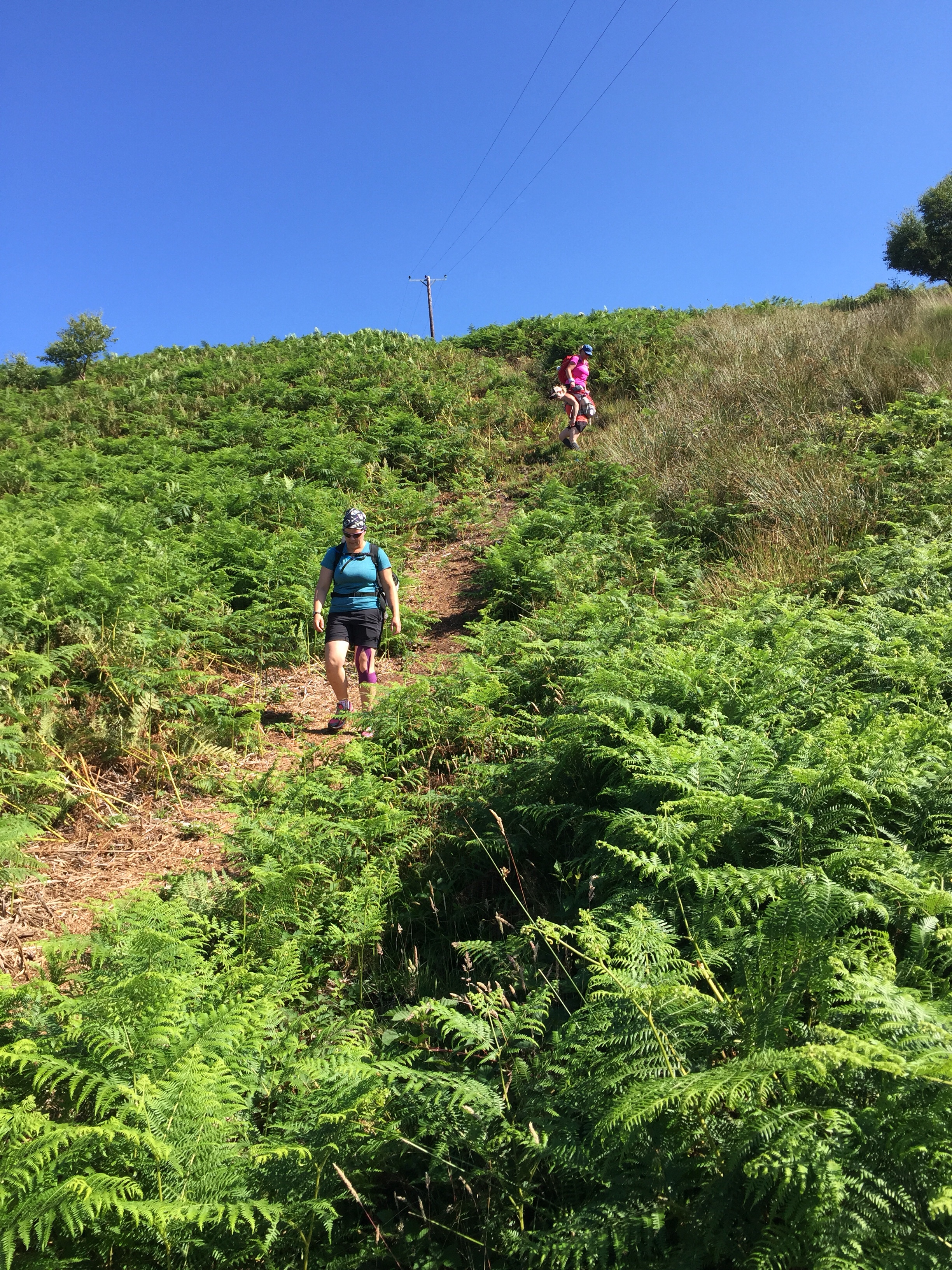 From there, we started out on the path. This included a short distance on the road around the headland and a steep, long uphill to take us to a fern filled, undulating path on the cliff above the beach.