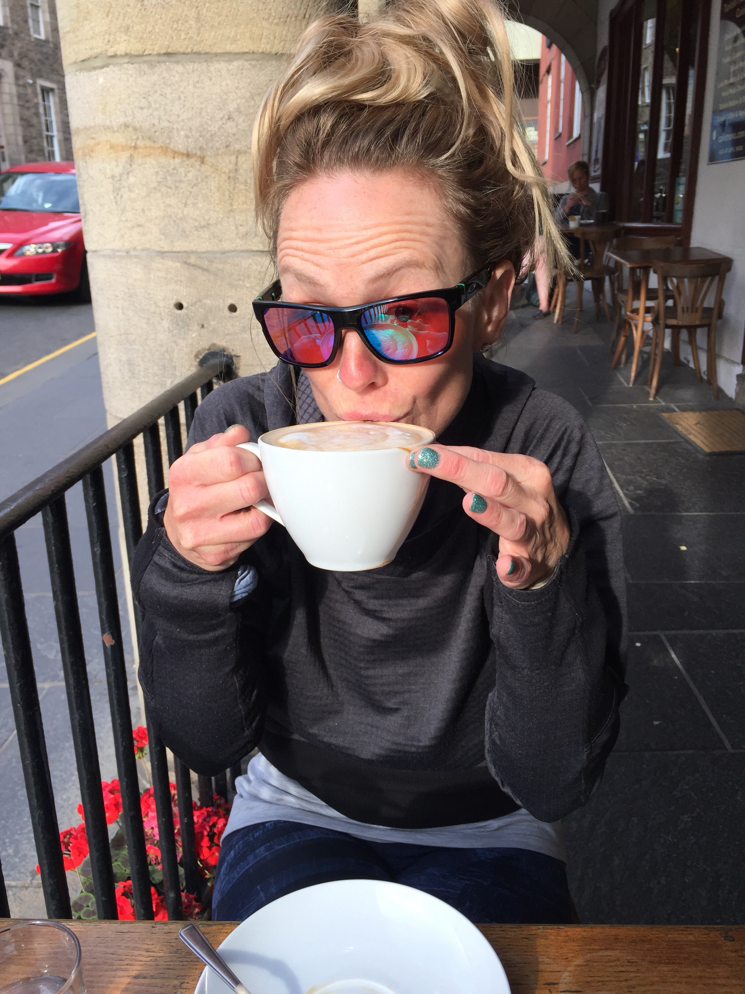 Well we are up now – so Shar and I went for a quick hike up Arthur’s Seat as our morning workout, checked out an amazing old cemetery that included a watch tower that used to be manned by guards to catch grave robbers who were stealing bodies for medical study in the 1830s, and enjoyed a Turkish coffee. Great morning!